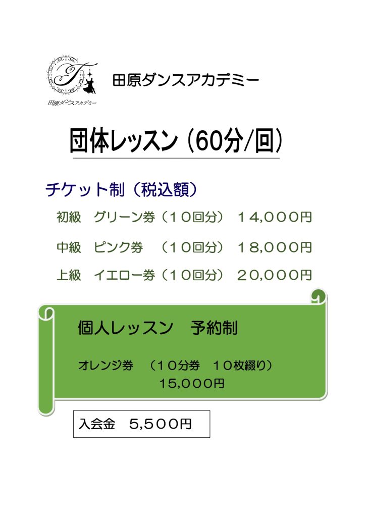 レッスン料金表LESSON-FEE