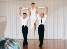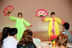 | <スタジオ初級コース>オープニングは、日韓親善の心をこめてシマチョゴリも艶やかにマンボを! | ||