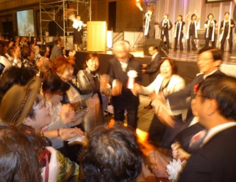 | 浜松のウナギを頂きました。 | 前夜祭のラストは歌と踊りでみんなで盛り上がりました。 |